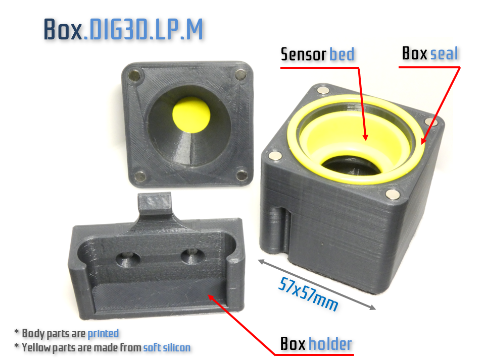 Probe is fixed in the box by the soft silicon bed. Box is sealed against a dust.