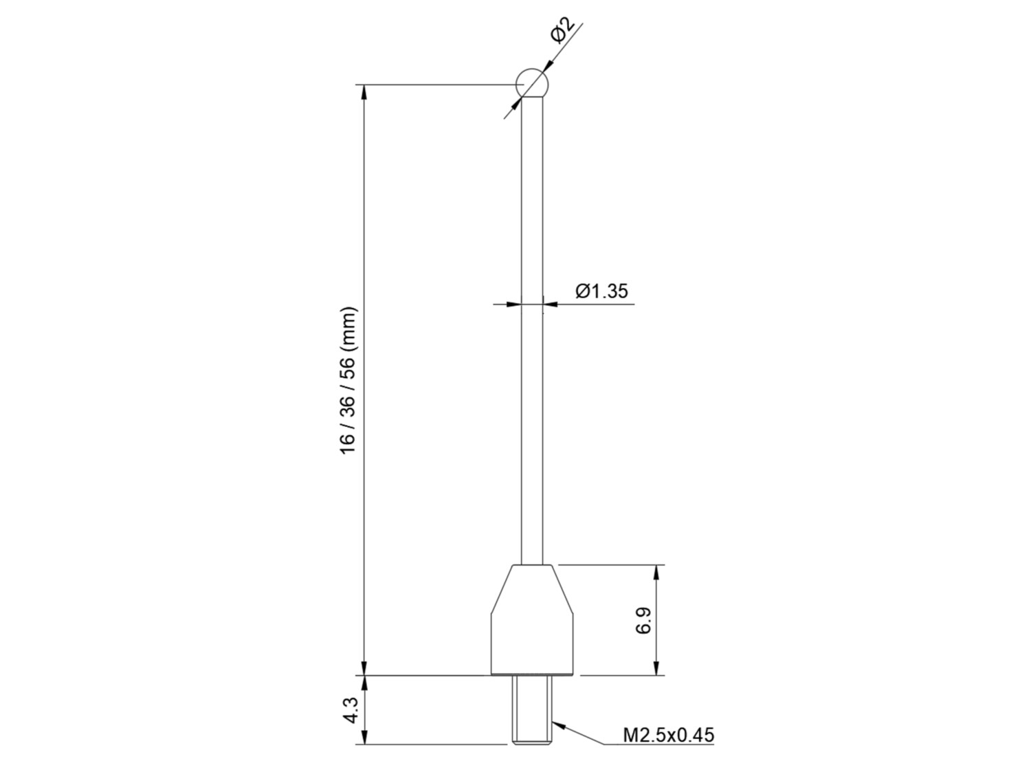 | Length | 16mm, 36mm, 56mm |
