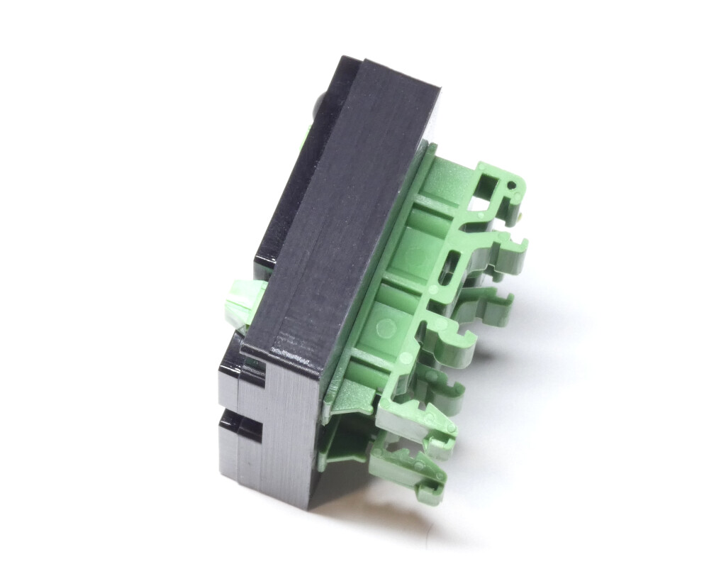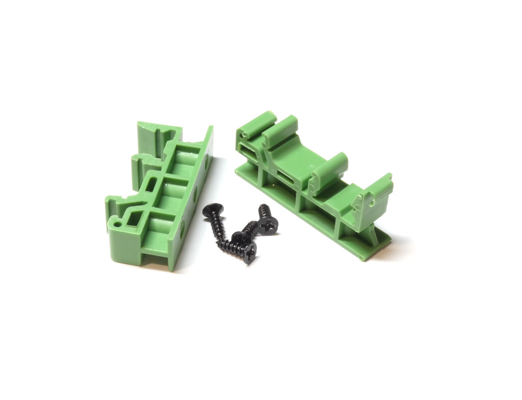 The enclosure + DIN rail clips allow horizontal or vertical mounting.